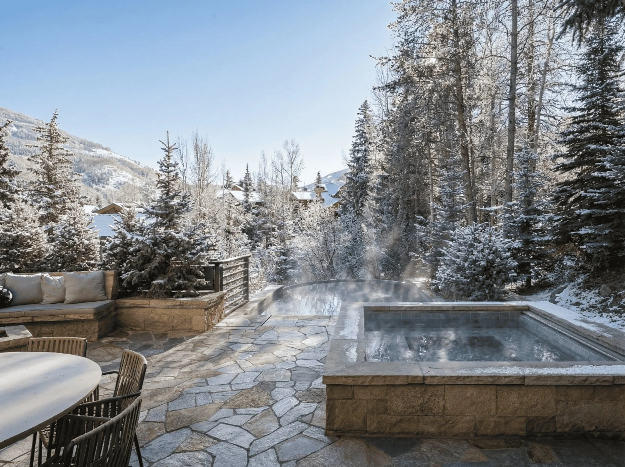 Indoor-outdoor living is celebrated across the third, fourth, and fifth floors, where towering glass sliders seamlessly connect extravagant interiors with over 7,000 square feet of radiant snowmelt systems across all exterior spaces, creating a year-round retreat for grand entertaining.